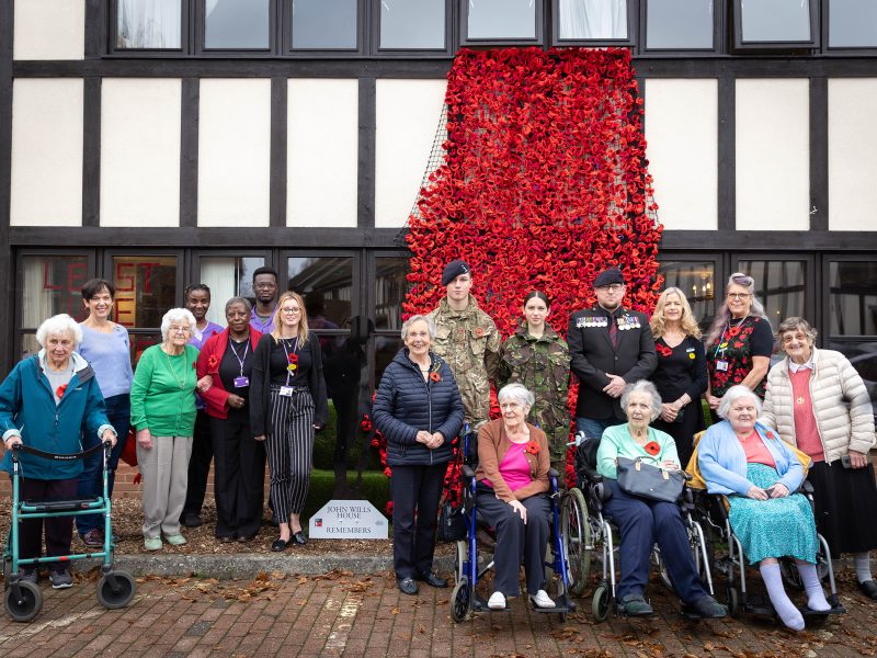 A poppy waterfall made up of thousands of hand-made poppies has been unveiled at St Monica Trust’s John Wills House care home.